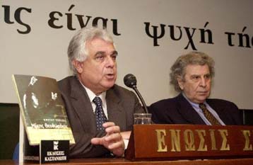 Προσέθεσε ότι ο πρώτος βιογράφος του ήταν ο Ζακ Κουμπάρ, δημοσιογράφος της Humanite και γνήσιος κομμουνιστής. «Όμως, έκανε το λάθος να με βιογραφήσει λίγο πριν από τη Χούντα, και καταλαβαίνετε από εκεί και πέρα πόσες και ποιες εκπλήξεις τον περίμεναν. Προφανώς με ήθελε μούμια, ακινητοποιημένο μέσα στις σελίδες του βιβλίου του, να ατενίζω ατάραχος τις ημέρες του μέλλοντος που τραγουδούν, κατά την έκφραση του Μωρίς Τορέζ, και που θα είχαν ασφαλώς τα χρώματα της παντιέρα ρόσα».