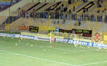 Έκρυθμη είναι αυτήν την ώρα η κατάσταση που επικρατεί στο γήπεδο Χαριλάου. Ο αποκλεισμός του Αρη, είναι η αιτία που αρκετοί φίλαθλοι των «κιτρινόμαυρων» έσπασαν καθίσματα και πολιόρκησαν τα αποδυτήρια της ομάδας τους.
