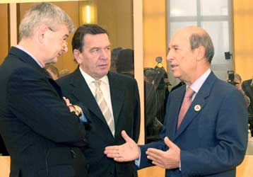 Συνάντηση με τον Γκέρχαρντ Σρέντερ θα έχει την Παρασκευή ο Κώστας Σημίτης , στο πλαίσιο των επαφών του με Ευρωπαίους ηγέτες για τη διεύρυνση της ΕΕ. Την ιδια ώρα, Κληρίδης και Ντενκτάς διατυπώνουν αντίθετες απόψεις για το αναμενόμενο σχέδιο Ανάν.