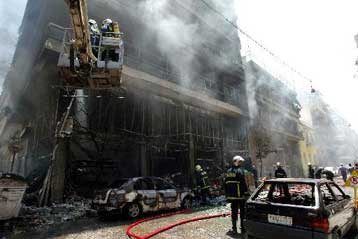 Το έργο της Πυροσβεστικής δυσχέραιναν οι εκρήξεις από τα εύφλεκτα υλικά (φιάλες υγραερίου και εντομοκτόνων) που βρίσκονταν στο κατάστημα.