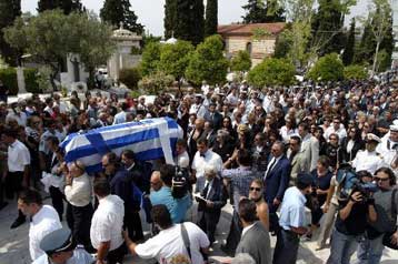 Στη νεκρώσιμη ακολουθία χοροστάτησε ο Αρχιεπίσκοπος Αθηνών και πάσης Ελλάδος Χριστόδουλος και παρέστησαν εκτός από τον πρωθυπουργό, σύσσωμο το Υπουργικό Συμβούλιο, ο πρόεδρος της Βουλής Απόστολος Κακλαμάνης, ο πρόεδρος του Συνασπισμού Νίκος Κωνσταντόπουλος, ο Γραμματέας της Κεντρικής Επιτροπής του ΠΑΣΟΚ Μιχάλης Χρυσοχοϊδης, ο Κώστας Λαλιώτης, ο πρόεδρος της ΓΣΕΕ Χρήστος Πολυζωγόπουλος, εκπρόσωποι της ΝΔ και του ΚΚΕ, μέλη αντιστασιακών οργανώσεων, εκπρόσωποι του δικηγορικού σώματος και πλήθος κόσμου.