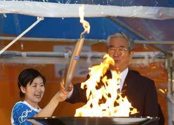 Τη Φλόγα κατέβασε από το αεροπλάνο, εκπροσωπώντας την ΟΕΟΑ ΑΘΗΝΑ 2004 ο Γενικός Διευθυντής Μάρκετινγκ, Εισιτηρίων και Λαμπαδηδρομίας κ. Γιώργος Μπόλος και την παρέδωσε στον Έλληνα πρέσβη στο Τόκιο κ. Κυριάκο Ροδουσάκη. Λίγο αργότερα, σε κεντρικό σημείο της πόλης έγινε η επίσημη υποδοχή από ένα μεγάλο συγκρότημα χορευτών και τυμπανιστών.