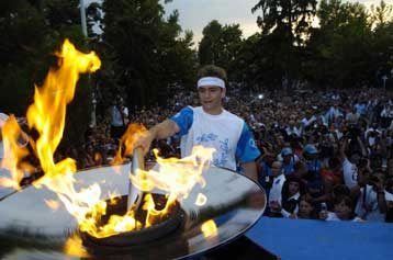 Ο «αργυρός» Ολυμπιονίκης του Σίδνεϊ άναψε τον Βωμό στην πλατεία Ελευθερίας των Σερρών, παρουσία του πρωταθλητή Ευρώπης στο ποδόσφαιρο. Και οι δυο βραβεύθηκαν, όπως και ο τέταρτος Ολυμπιονίκης του Λος Αντζελες στην άρση βαρών, Ιωάννης Τζιντζάρης.