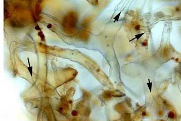 Από τη μήτρα που βρέθηκε στο δείγμα ξεκινούσαν διαφανή αγγεία, πιθανώς αιμοφόρα, μέσα στα οποία υπήρχαν σχηματισμοί σαν οστεοκύτταρα. Το ενδιαφέρον είναι ότι όλες αυτές οι δομές θυμίζουν κόκκαλο στρουθοκάμηλου -τα πουλιά προήλθαν από τους δεινόσαυρους.