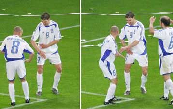 Στο 89 ο Ρεχάγκελ πέρασε μέσα τον Φάνη Γκέκα, που έτσι έκανε το ντεμπούτο του με την Εθνική ομάδα. Με την ιαχή «Νάτοι νάτοι οι πρωταθλητές» ολοκληρώθηκε το νικηφόρο παιχνίδι για την Ελλάδα.