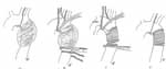 Χειρουργική αντιμετώπιση τραυματικής ρήξης του ισθμού της αορτής με αποκλεισμό και αντικατάσταση με συνθετικό μόσχευμα, χωρίς μέτρα προστασίας μελών-οργάνων (‘clamp-and-sew’ technique). Α. Η ρήξη και το ψευδοανεύρυσμα στον ισθμό της αορτής. B. Εφαρμογή των λαβίδων αποκλεισμού κεντρικώς και περιφερικώς της ρήξης, μετά από παρασκευή. Γ. Εκτέλεση της κεντρικής αναστόμωσης του μοσχεύματος με το πέρας του αορτικού τόξου. Δ.Ολοκλήρωση της αντικατάστασης του ισθμού της αορτής με συνθετικό σωληνωτό μόσχευμα.