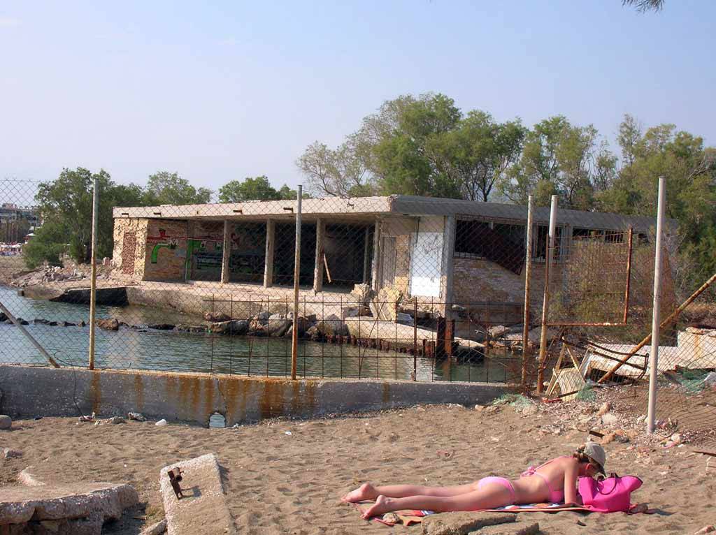 «Πρόκειται για την “Απολλώνια ακτή” Β’ Βούλας, που για το 2005 έχει βραβευτεί με τη “Γαλάζια Σημαία” (“Blue Flag”)! Στα δεξιά της ερειπωμένης αποθήκης – σύνορα Βούλας και Βουλιαγμένης (Καβούρι) – εκβάλλει ανοιχτός αγωγός υποτιθέμενων ομβρίων. Όμως η δυσοσμία που αποπνέει παραπέμπει σε αποχετευτικό αγωγό και γίνεται πιο αποπνικτική για τους λουόμενους στην παραλία του Καβουρίου όταν πνέει βοριαδάκι. Συχνά τα λύματα που εκβάλλουν είναι ορατά δια γυμνού οφθαλμού ως εκ του κιτρινωπού χρώματός των και της υψηλής τους πυκνότητας. Εξάλλου, η ερειπωμένη αποθήκη, εκτός από το άκρως αντιαισθητικό θέαμα, προσφέρει και καταφύγιο για παντός είδους επικίνδυνες δραστηριότητες…»
