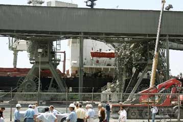 Το δυστύχημα σημειώθηκε όταν κατά τη διάρκεια εργασιών συντήρησης στην προβλήτα, ένα βαρύ εξάρτημα του γερανού αποκολλήθηκε και έπεσε καταπλακώνοντας τους άτυχους εργαζόμενους.
