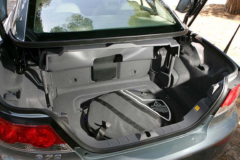 Ακόμα χειρότερα, με την οροφή ανοικτή, ο προσφερόμενος χώρος περιορίζεται στα 200 λίτρα. Οσο για το διαθέσιμο άνοιγμα, θα ήταν τουλάχιστον απαγορευτικό εάν, ευφυώς, με το πάτημα ενός κουμπιού, ένας ηλεκτρομηχανισμός δεν ανασήκωνε ολόκληρη την αναδιπλωμένη οροφή, ώστε να αποκαταστήσει την πρόσβαση.