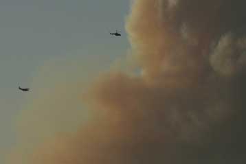 Τα δύο πυροσβεστικά αεροσκάφη «Καναντέρ» αποχώρησαν, αφού δεν ήταν αποτελεσματική η παρουσία τους, λόγω του ορεινού όγκου με χαράδρες. Επιπλέον, τα πεζοπόρα τμήματα της πυροσβεστικής δεν μπορούν να κινηθούν εύκολα λόγω των παλιών ναρκοπεδίων της περιοχής.