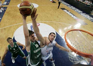 Οι δύο ομάδες ακολουθούσαν η μία την άλλη καθόλη τη διάρκεια του πρώτου ημιχρόνου, με τους Σλοβένους να έχουν ένα μικρό προβάδισμα (41-36 στο 20), το οποίο οφειλόταν στην καλή τους παρουσία κάτω από τα καλάθια, αλλά και την πολύ καλή τους περιφερειακή άμυνα, που οδήγησε σε εύκολους αιφνιδιασμούς.