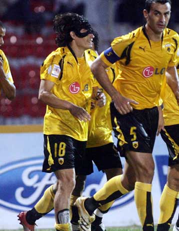 Ο Ισμαέλ Μπλάνκο αφότου πέτυχε το νικηφόρο γκολ της συνάντησης και πανηγύρισε φορώντας την μάσκα του… Ζορό. Ο Αργεντινός είναι στην πρώτη θέση των σκόρερ με τρία γκολ, όσα έχει πετύχει και η ομάδα του στο πρωτάθλημα.