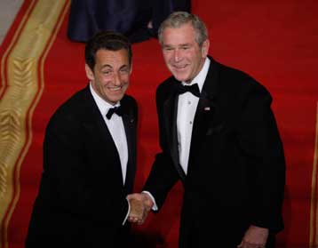 Θερμή υποδοχή επιφύλαξε ο Τζορτζ Ο. Μπους στον Γάλλο ομόλογό του, ο οποίος πραγματοποιεί την πρώτη του επίσημη επίσκεψη στις ΗΠΑ. Στη διάρκεια του δείπνου, ο Γάλλος ηγέτης τόνισε ότι οι διαφορές στο Ιράκ δεν πρέπει να υπονομεύσουν τη συμμαχία των δύο χωρών.