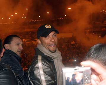 Αμέσως, οι φίλαθλοι του Αρη προχώρησαν σε μια μοναδική υποδοχή. Καπνογόνα, κροτίδες και συνθήματα, με το «Αμορόζο είσαι τρέλα, είσαι τρέλα με την κίτρινη φανέλα» να ξεχωρίζει.