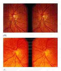 Φυσιολογικό οππτικό νεύρο (Α) και γλαυκωματικό οπτικό νεύρο (Β)