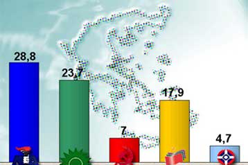 Βάσει των στοιχείων αυτών, οι πιθανές έδρες στη Βουλή είναι 139-140 για τη ΝΔ, 82-84 για το ΠΑΣΟΚ, 18-20 για το ΚΚΕ, 46-48 για το ΣΥΡΙΖΑ και 11-12 για το ΛΑΟΣ.