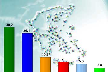 Συγκεκριμένα, στο ερώτημα εάν την επόμενη Κυριακή διεξάγονταν ευρωεκλογές, το ΠΑΣΟΚ θα συγκέντρωνε 28,5%, η ΝΔ 26,5%, ο ΣΥΝ 13%, το ΚΚΕ 7,9%, ο ΛΑΟΣ 7,1% και οι Οικολόγοι – Πράσινοι 3,8%.