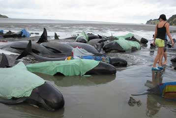 Τα κήτη, που ανήκουν σε δύο συγγενικά είδη, βρέθηκαν αβοήθητα σε δύο διαφορετικές παραλίες της Νέας Ζηλανδίας.Στο νησί Σάουθ Αϊλαντεξόκειλαν 105 μαυροδέλφιναGlobicephala melas, ενώ στη χερσόνησο Κορομάντελ εντοπίστηκαν 63 μαυροδέλφινα Globicephala macrorhynchus, από τα οποία τα 43 επέζησαν.
