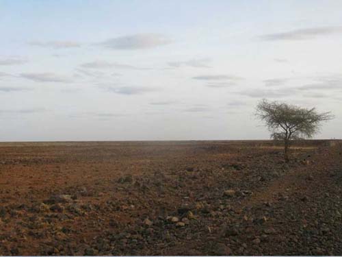 Μετατοπιζόμαστε στην αριστερή λωρίδα του δρόμου (‘κουσούρι’ της Κένυας από την Αγγλική αποικιοκρατία), και μετά από 100χλμ χωματόδρομου (που όλοι είχαμε μια ελπίδα να ήταν το ‘δύσκολο’ κομμάτι), αρχίζει μια οδοιπορική Οδύσσεια! Η τοπογραφία είναι τελείως επίπεδη, άγονη, και γεμάτη μαύρες ηφαιστειακές πέτρες (η τοπική ονομασία της περιοχής είναι «Το δάσος των πετρωμάτων») . Με μέσο όρο ταχύτητας τα 20χλμ/ώρα, περάσαμε τις επόμενες 8 ώρες αναπηδώντας στο έλεος του δρόμου. Τοπίο πολύ αφιλόξενο και μοναχικό, με τα μόνα ίχνη ζωής τις περιστασιακές αντιλόπες και τα άγρια πουλιά. Μετά από 250χμ., και μια αλλαγή σε σκασμένο λάστιχο, φτάσαμε στο Marsabit, ένα χωριό όχι πολύ διαφορετικό από συνοριακή πόλη, καθώς είναι αποκλεισμένο τουλάχιστον 200χμ μακριά από οτιδήποτε άλλο, για την διανυκτέρευση μας.