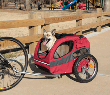 Υπάρχει ειδικό τρέιλερ για μεταφορά σκύλου…Που συνδέεται εύκολα με το ποδήλατο και απολαμβάνετε παρέα τη βόλτα σας…
