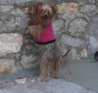 Οταν επισκέφθηκα τη μαμά – Τάνια (ένα πανέμορφο York shire), ζήτησα να δω τα θηλυκά κουταβάκια και ένα από τα δύο με κοίταξε με τα ολοστρόγυλλα μαύρα μάτια της, κατευθείαν στα μάτια. Αυτό ήταν, με διάλεξε (άρα σαϊνι, κατάλαβε καλά πως θα με έκανε ότι ήθελε)