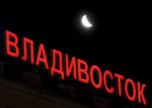 Η ολική έκλειψη ήταν ορατή τα ξημερώματα για τους κατοίκους της Βόρειας και Νότιας Αμερικής, της βόρειας Ασίας και της Ευρώπης βόρεια της Ιρλανδίας (αριστερά, η θέα από το Βλαδιβοστόκ της Ρωσίας).