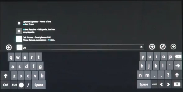 Η Microsoft έδειξε την νέα έκδοση του Internet Explorer 10, ο οποίος ανταποκρίνεται στην αφή γρήγορα με τη βοήθεια του υλικού, για να μεταβεί ο χρήστης από ιστοσελίδα σε ιστοσελίδα ή για την αλλαγή ενεργών παραθύρων. Ενδιαφέρον είναι ότι η Microsoft διαιρεί στα δύο το εικονικό πληκτρολόγιο που εμφανίζεται στην οθόνη αφής, ώστε να επιτρέψει την προβολή περιεχομένου χωρίς να καταλαμβάνει τη μισή οθόνη και υποστηρίζει ότι η πληκτρολόγηση παραμένει απρόσκοπτη.