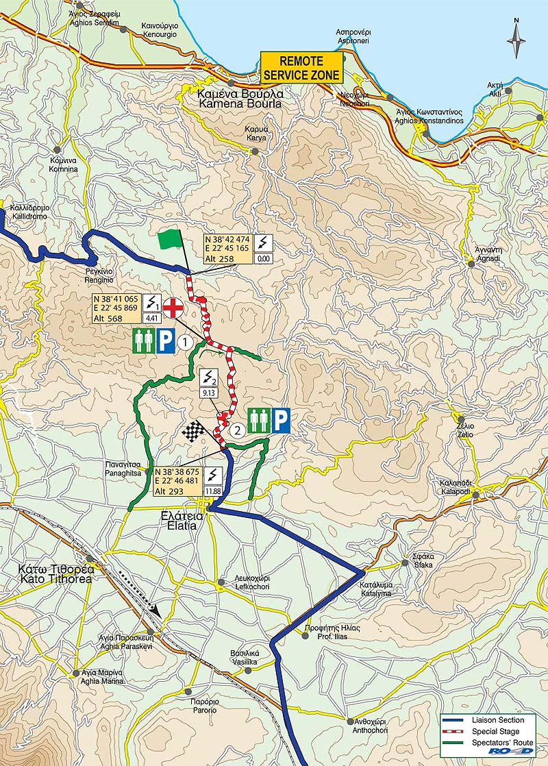 Στην έξοδο της Ελάτειας προς Αταλάντη, στο πρατήριο υγρών καυσίμων Revoil, μηδενίζετε το χιλιομετρητή. Ύστερα από 750 μ. στρίβετε αριστερά στο χωματόδρομο και ακολουθείτε το road book, για να φτάσετε 5,90 χλμ. μετά στο 11,24 χλμ. της Ειδικής.