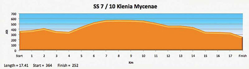 Στην αρχή είναι αρκετά γρήγορη, ενώ προς τη μέση ο δρόμος στενεύει. Οι επιφάνειες είναι αρκετά σκληρές, ενώ έχει και μπόσικο χώμα, το οποίο αναμένεται να κάνει ακόμα πιο δύσκολο το έργο των οδηγών. Προς το τέλος γίνεται και πάλι γρήγορη. ΣΗΜΕΙΩΣΗ: Μεταξύ των δύο περασμάτων των αγωνιστικών η διαδρομή δεν θα ανοίξει. Μετά το τελευταίο αυτοκίνητο του πρώτου περάσματος και τον ουραγό, θα περάσουν ξανά τα οχήματα ασφαλείας της Οργάνωσης και οι εκπρόσωποι της Διεθνούς Ομοσπονδίας.