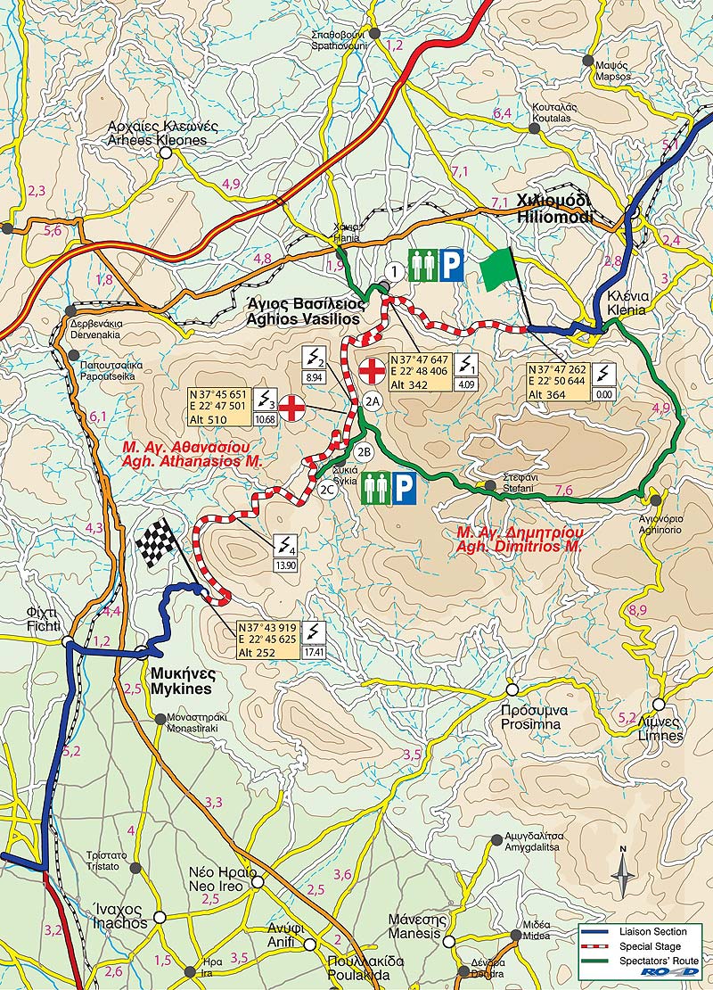 Ενδιάμεση πρόσβαση 1 (Δείτε το Road Book) Ερχόμενοι από Χιλιομόδι ή από τον κόμβο της Νεμέας, στη διασταύρωση προς Άγιο Βασίλειο μηδενίζετε και ακολουθείτε το road book για 2,15 χλμ., για να φτάσετε στο 4,09 χλμ. της Ειδικής. Εθελοντές θα σας κατευθύνουν σε χώρους στάθμευσης.