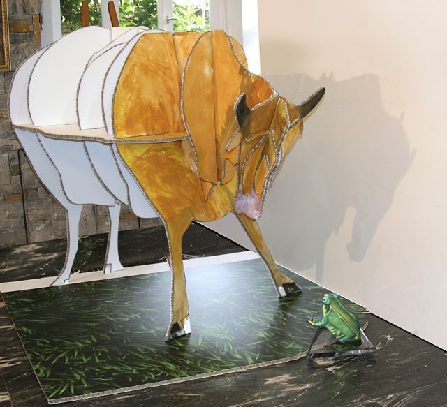 Στα πλάσματα αυτά, αποδίδεται ένας εσωτερικός κόσμος, πλούσιος σε αρετές, εμμονές, κακίες που εμφαίνονται ποικιλότροπα στην εικαστική τους ζωή. Σημαντικό στοιχείο της έκθεσης, αποτελεί και μια σειρά από παιχνίδια χειροτεχνίας και ιχνογραφίας, δημιουργίες του καλλιτέχνη, επίσης αναφορικά στους μύθους του Αισώπου.