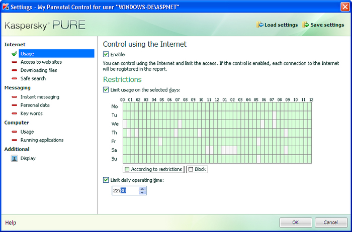 Το σύστημα Γονικού Ελέγχου του Kaspersky PURE μπορεί να μπλοκάρει την ανταλλαγή μηνυμάτων μεταξύ προκαθορισμένων επαφών και οποιουδήποτε χρήστη του δικτύου του σπιτιού και να αποτρέψει συνδέσμους από ανεπιθύμητες σελίδες να εμφανίζονται στα αποτελέσματα αναζητήσεων.