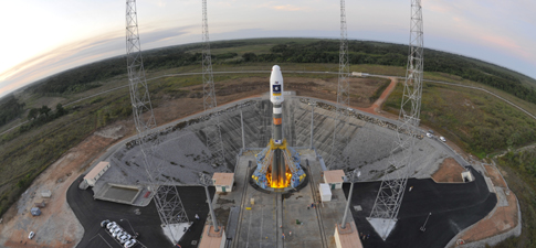 Στο ευρωπαϊκό διαστημικό κέντρο του Κουρού στη Γαλλική Γουιάνα, που βρίσκεται σε ιδανική θέση κοντά στον ισημερινό, ο Soyuz εκτοξεύτηκε από τη νέα του εξέδρα στις 13.30 ώρα Ελλάδας την Παρασκευή.