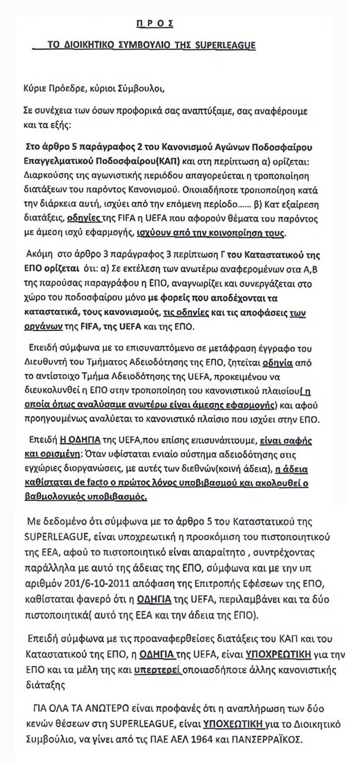 «Η απόφαση της Super League, κατά τη δική μας εκτίμηση, δεν συνάδει με το σωστό και το δίκιο, καθώς το άρθρο 5 του ΚΑΠ αναφέρει πως οι αποφάσεις και οι γνωμοδοτήσεις της UEFA υπερτερούν των ελληνικών. Είναι ξεκάθαρο πως δεν τηρήθηκε ο νόμος», ήταν το πρώτο σχόλιο του Κώστα Πηλαδάκη και συνέχισε:
