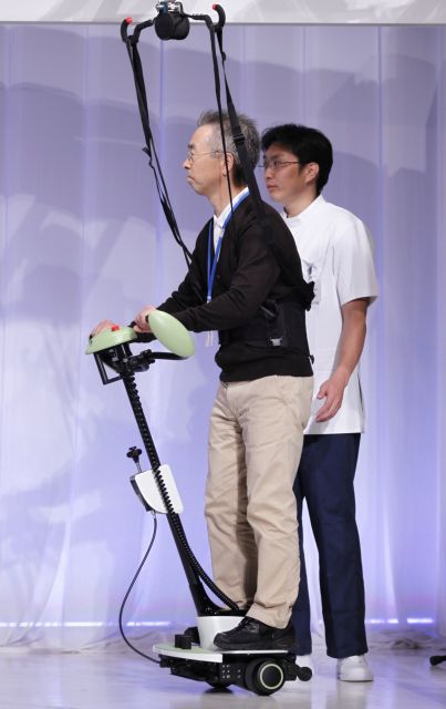 Ένα τρίτο ρομπότ, που μοιάζει αμυδρά με πατίνι (ένθετη δεξιά) βοηθά στην αποκατάσταση ασθενών με προβλήματα ισορροπίας.
