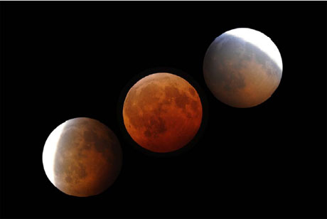 Πρόκειται για την ολική έκλειψη της Σελήνης που θα αρχίσει αρκετά νωρίτερα (1:33 μ.μ. ώρα Ελλάδος) όταν ο φυσικός μας δορυφόρος θα βρίσκεται ακόμη κάτω από τον ορίζοντά μας. Αν και θα έχουμε χάσει την ολική φάση του φαινομένου θα μπορέσουμε εντούτοις να δούμε εύκολα με την ανατολή της την Σελήνη καλυμένη με το πέπλο της γήινης παρασκιάς που θα χρωματίζει την επιφάνειά της με το χαρακτηριστικό κεραμιδί χρώμα της μερικής φάσης της έκλειψης. Το όλο φαινόμενο θα διαρκέσει μέχρι τις 7:30 μ.μ. και θα είναι ορατό, καιρού επιτρέποντος, απ’ όλη τη χώρα.