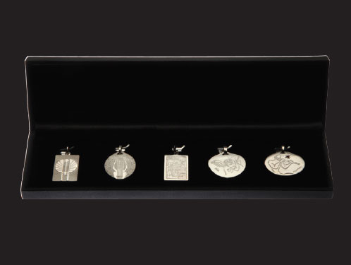 Κάθε ένα από αυτά τα έργα κυκλοφόρησε σε αυστηρά περιορισμένο αριθμό αντιτύπων και το εκμαγείο του (μήτρα) καταστράφηκε. Έτσι, τα 15 κοσμήματα, που πέρασαν όχι μόνον στην ιστορία της Τέχνης, αλλά και στην ιστορία των Φίλων της Μουσικής, αγαπήθηκαν, φορέθηκαν και απέκτησαν με τα χρόνια διπλή συλλεκτική αξία.