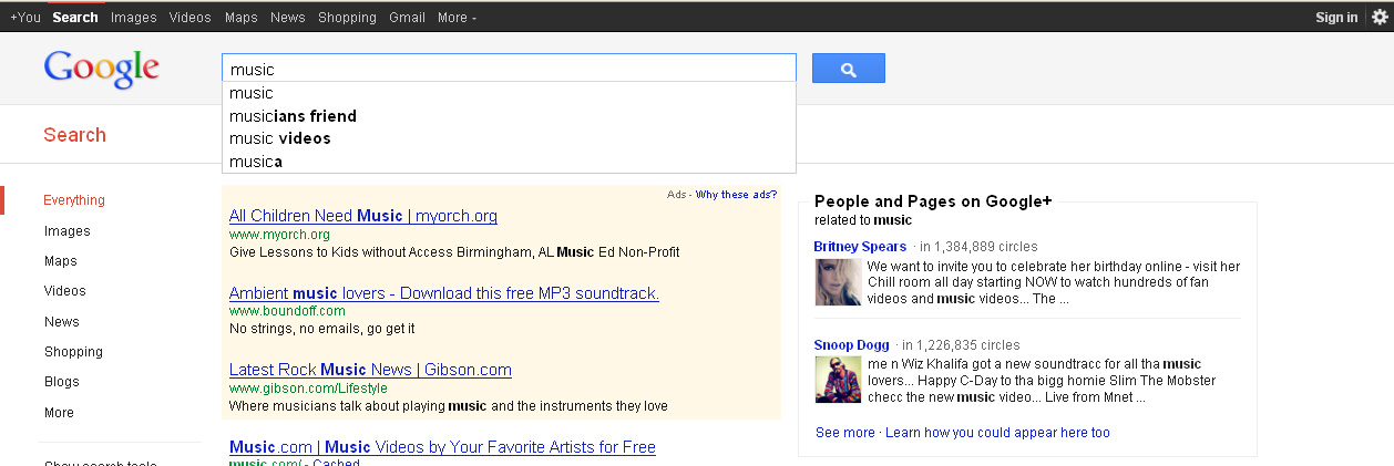 Εντούτοις, παρατηρείστε όταν επισκεφτείτε το google.com χωρίς να έχετε κάνει login, ότι η αναζήτηση με λέξη-κλειδί π.χ. music επιστρέφει αποτελέσματα από το Google+ (στην προκειμένη περίπτωση από το προφίλ της Μπρίτνεϊ Σπίαρς εκεί, όχι όμως στο Facebook ή στο Twitter). Το γεγονός δείχνει σαν μια προσπάθεια από την Google να προσελκύσει επιχειρήσεις στο Google+, αφού η θέση προβολής που κερδίζουν στην πρώτη σελίδα αποτελεσμάτων του Google είναι προνομιακή.
