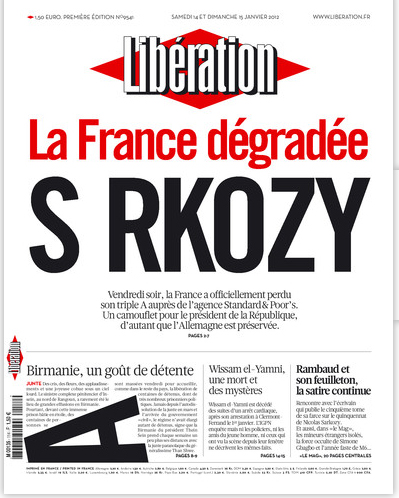 Mόλις 100 μέρες πριν από τις προεδρικές εκλογές, ο Νικολά Σαρκοζί δέχτηκε ένα σκληρό χτύπημα, αφού η Γαλλία έχασε το πολύτιμο ΑΑΑ των Οίκων Αξιολόγησης, γράφει η Liberation.