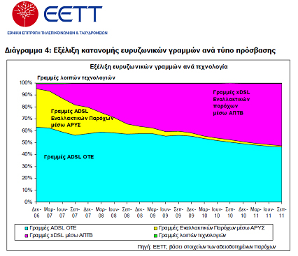 «Από τα εμπορικά δεδομένα της αγοράς αποδεικνύεται ότι η παροχή ευρυζωνικών Υπηρεσιών μέσω της υφιστάμενης Χ.Ε.Π εμφανίζεται να έχει μειωμένη απήχηση στους τελικούς καταναλωτές και μάλιστα διαρκώς συρρικνούμενης δυναμικής. Αντίθετα εντυπωσιακή είναι η πορεία της παροχής υπηρεσιών μέσω LLU η οποία αποτελεί το βασικό εργαλείο αύξησης της ευρυζωνικής διείσδυσης στην χώρα μας.