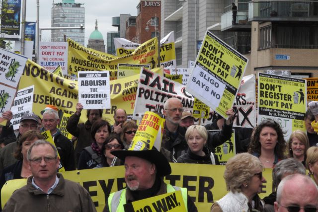 «Αποκλείεται, δεν πληρώνουμε», «απορρίψτε το φόβο, η λιτότητα σταματά εδώ», «Φορολογήστε τους κλέφτες που μας έφεραν σε αυτήν την κατάσταση» ήταν μερικά από τα συνθήματα των Ιρλανδών που αντιδρούν στο φόρο.