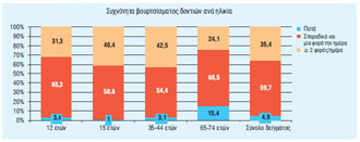 Από την έρευνα προκύπτει ότι, μόνο το 35,4% βουρτσίζει τα δόντια του δύο ή περισσότερες φορές ημερησίως, ενώ 4,9% δεν τα βουρτσίζει ποτέ. Βέβαια και εδώ υπάρχουν μεγάλες διακυμάνσεις κατά περιοχή και ηλικιακή ομάδα.