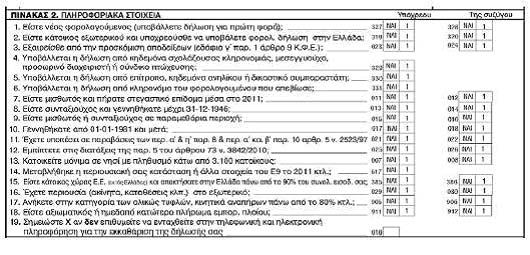 β) σχετικές πληροφορίες, διευκρινίσεις και επισημάνσεις προς τους φορολογούμενους, για την ορθή συμπλήρωση των αντίστοιχων σημείων (κωδικών αριθμών) της παραπάνω δήλωσης.