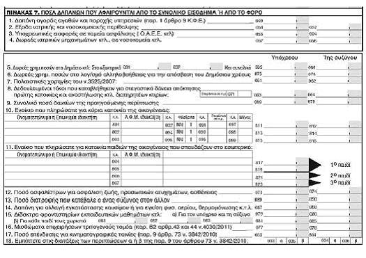 Στον πίνακα 7 δηλώνονται τα ποσά των δαπανών που αφαιρούνται από το συνολικό εισόδημα ή από το φόρο.