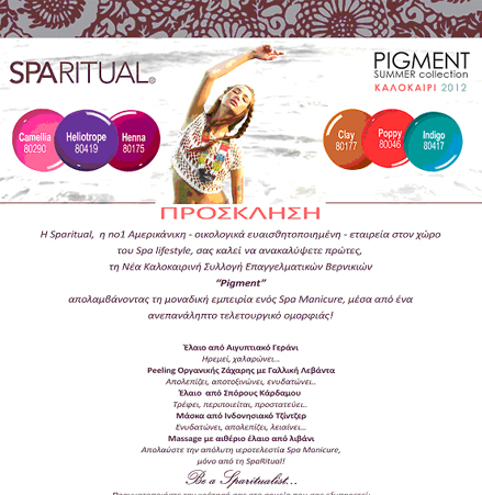 Αξίζει να αναφέρω ότι σχεδόν όλες οι συνθέσεις των Sparitual είναι οργανικά πιστοποιημένες. Ακόμα και τα βερνίκια νυχιών δεν περιλαμβάνουν ύποπτες χημικές ουσίες. Όσο για τη διάρκεια; Έχουν περάσει 3 μέρες και το μανικούρ μου είναι άθικτο, παρ’ όλες τις δουλειές που έχω κάνει.