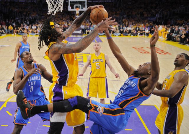 Αν και βρέθηκαν στο -5, 3 λεπτά πριν τη λήξη, οι Λέικερς πήραν τη νίκη 99-96 επί της Οκλαχόμα, μέσα στο Λος Άντζελες και μείωσαν σε 2-1 τη σειρά της ημιτελικής φάσης των πλέι οφ στο ΝΒΑ. Επίσης, παρά το κακό ξεκίνημα 0-14, η Φιλαδέλφεια φώναξε ζωντανή στο β' μέρος και ισοφάρισε σε 2-2 τη σειρά με τους Σέλτικς, επικρατώντας με 92-83.