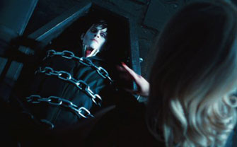 ΕΥΑ ΓΚΡΙΝ – ΑΝΖΕΛΙΚ ΜΠΟΥΣΑΡ Κι ενώ η Ελίζαμπεθ προσπαθεί με νύχια και με δόντια να κρατήσει την οικογένεια Κόλινς στο ύψος της, υπάρχει ένα άλλο πρόσωπο που κάνει το παν για να την κατακρημνίσει: μια μάγισσα ονόματι Ανζελίκ Μπουσάρ, που κατά τον 20ο αιώνα είναι γνωστή ως Άντζι. «Ήταν μεγάλη χαρά για μένα το γεγονός ότι ενσάρκωσε τον συγκεκριμένο ρόλο γιατί του προσέδωσε πολύ περισσότερα στοιχεία απ’ όσα θα μπορούσα ποτέ να φανταστώ. Είχε καταπληκτικές ιδέες, ήταν ευχάριστη στη συνεργασία και με εξέπληττε καθημερινά» λέει ο Μπάρτον.