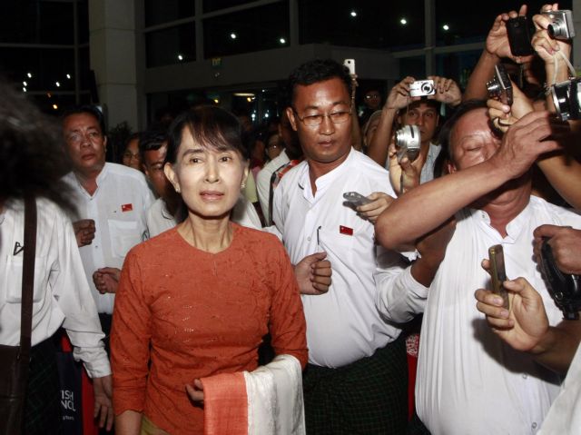 Η ηγέτιδα της αντιπολίτευσης, σύμβολο του δημοκρατικού αγώνα στη Μιανμάρ, Αούνγκ Σαν Σούου Κίι, αναχωρεί για το πρώτο ταξίδι της στο εξωτερικό έπειτα από 24 ολόκληρα χρόνια, που πέρασε είτε σε κατ’ οίκον περιορισμό, είτε φοβούμενη πως εάν φύγει το καθεστώς δεν θα της επιτρέψει ποτέ να επιστρέψει για να συνεχίσει τη μάχη της για τη δημοκρατία και τα ανθρώπινα δικαιώματα.