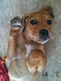 Είμαι ένα ημίαιμο Pitbull- Labrador μωράκι 4 μηνών, λιγάκι τεράστιο.. σε ανθρώπινα δεδομένα ζυγίζω 15 κιλά! Είμαι ένας περίεργος συνδυασμός