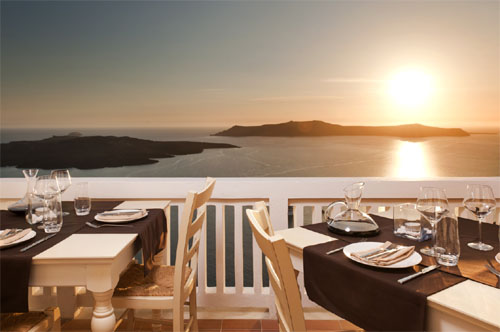 Η θέα από τις βεράντες του είναι μαγευτική. Η μπροστινή βεράντα κοιτά προς την αξεπέραστη καλντέρα και ενισχύει τη ρομαντική ατμόσφαιρα που έχουν επιμεληθεί οι ιδιοκτήτες. Η δεύτερη βεράντα έχει θέα προς την αδικημένη αλλά εξίσου ιδιαίτερης ομορφιάς ανατολική πλευρά του νησιού.